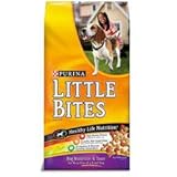 Your dog's got it made. He spends most of his time indoors, enjoying familiar surroundings and all the comforts of home. But did you know indoor dogs may get less exercise and may be prone to dry skin? That's why Purina veterinarians and nutritionists developed Purina Little Bites, formulated to meet the nutritional needs of indoor dogs like yours. New Little Bites has a formula that delivers: High quality protein that helps maintain lean muscle mass and an ideal body condition. Vitamin E and minerals to help promote healthy skin and coat. Crunchy nuggets to promote healthy teeth and gums and help freshen breath. And a small kibble and great taste your dog loves! ...Read more Details